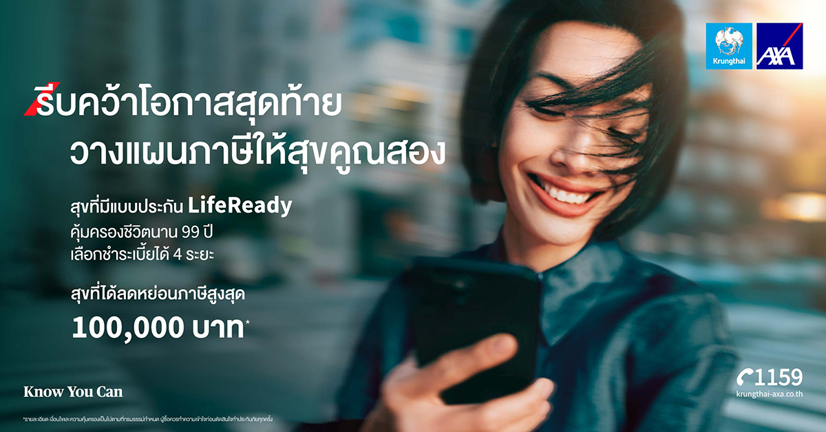 And importantly, if you want to have travel funds without any worries, don't forget! Plan your finances with 3 insurance plans from Krungthai-AXA. They allow you to live smoothly with light taxes.