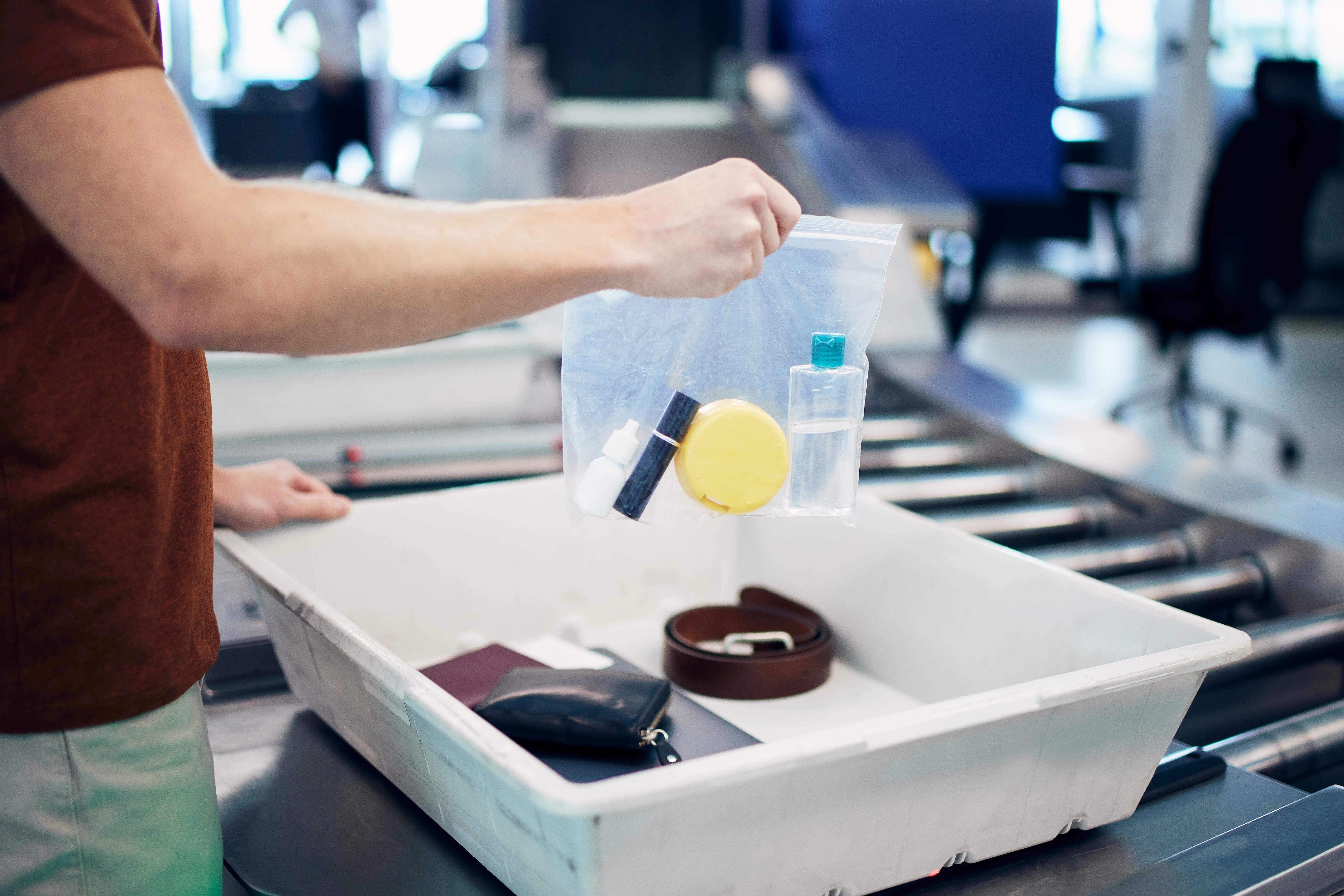 All containers must be placed together in a clear, resealable plastic bag no larger than 20 x 20 cm.
